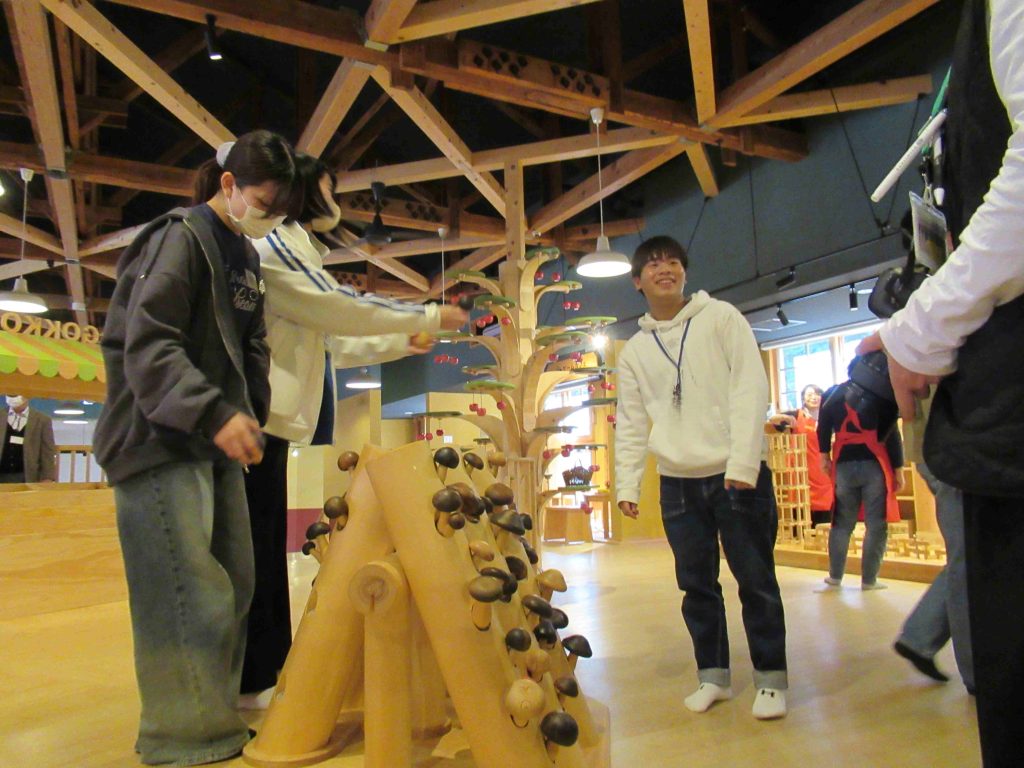 初めて木曽おもちゃ美術館へ行く学生も多く、木のおもちゃでそれぞれ楽しむ姿がたありました!
